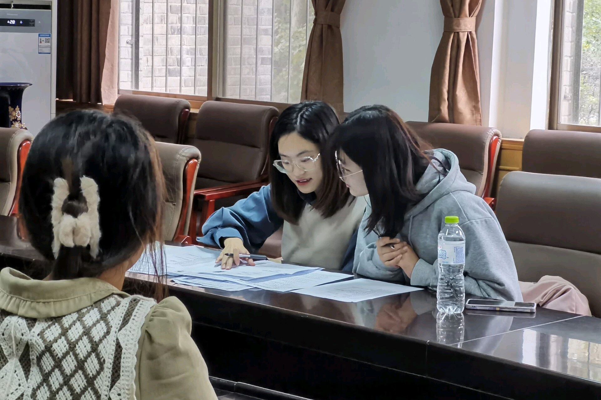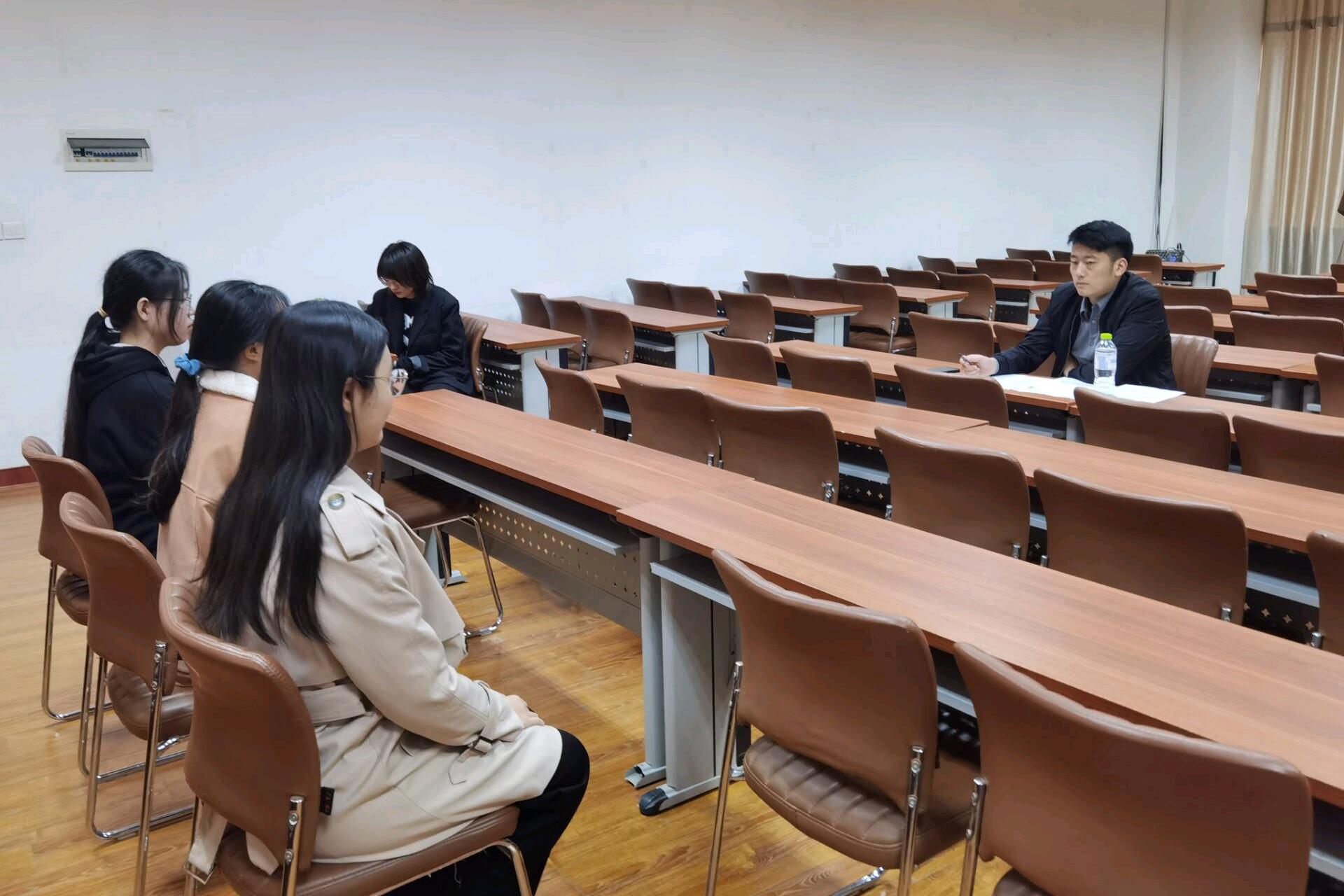 七十余名学生被分为三组,于不同地点进行面试。一组学生于1201资料室面试,高艳丽和学生会副主席兼秘书长毕晶晶担任面试者;二组学生于1201报告厅面试,周长富和团员自我管理委员会主席兼职团委书记于文静担任面试者;三组学生于1246会议室面试,梁菲函和学生会主席黄中玮担任面试者。