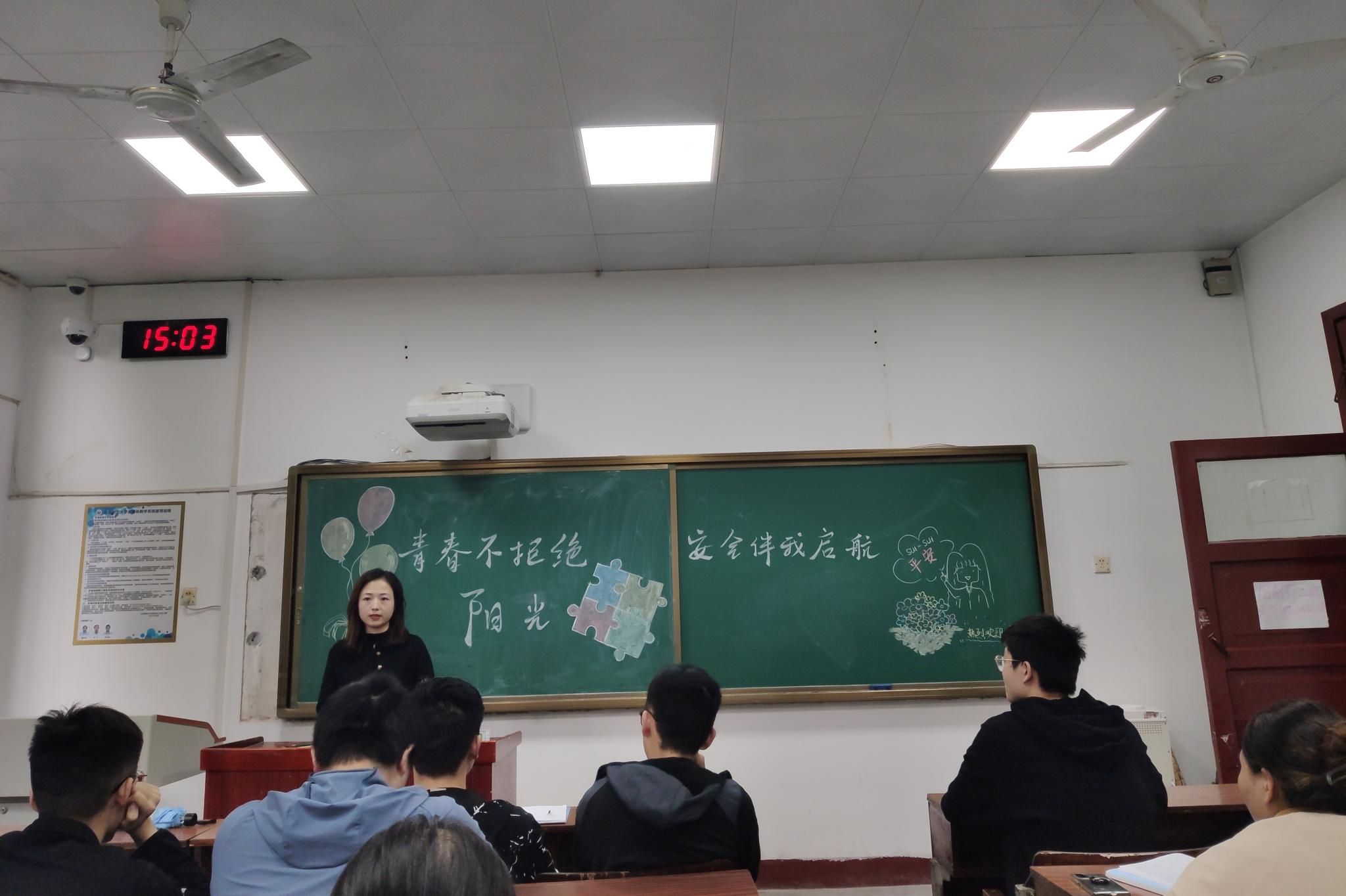 为了更好的增强学生的主动学习意识,安全防护意识和自我管理意识,让学生对自己的未来有更准确的认识和规划,10月8日上午,化学化工与材料科学院在千佛山校区一号教学楼1213教室举办“青春不拒绝阳光,安全伴我启航”主题班会,学院2018级辅导员高艳丽担任主讲人,2018级制药专业全体学生参与会议。
