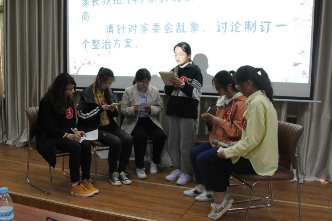 本次比赛分为突发状况处理、情景问答、无领导小组讨论三个环节。第一环节中,六名选手按照模拟竞聘类别分类依次进行PPT讲解,期间选手需应对不同突发状况,随后三位评委就每位选手的表现进行点评,拓展分析面试技巧。情景问答环节则从多个角度对选手进行各方面能力的考察。无领导小组讨论中,六位选手明确个人定位,就家委会乱象整改进行详细讨论,评委通过选手表现进行具体指导,详细分析竞聘者扮演角色,点明表达不足,给予逻辑指导。选手及现场观众获益匪浅。最后,滕允同学凭借优异的表现斩获一等奖,陈家琪、许鑫如获二等奖,薛依诺、锡福荣、贾雅鑫获三等奖。
