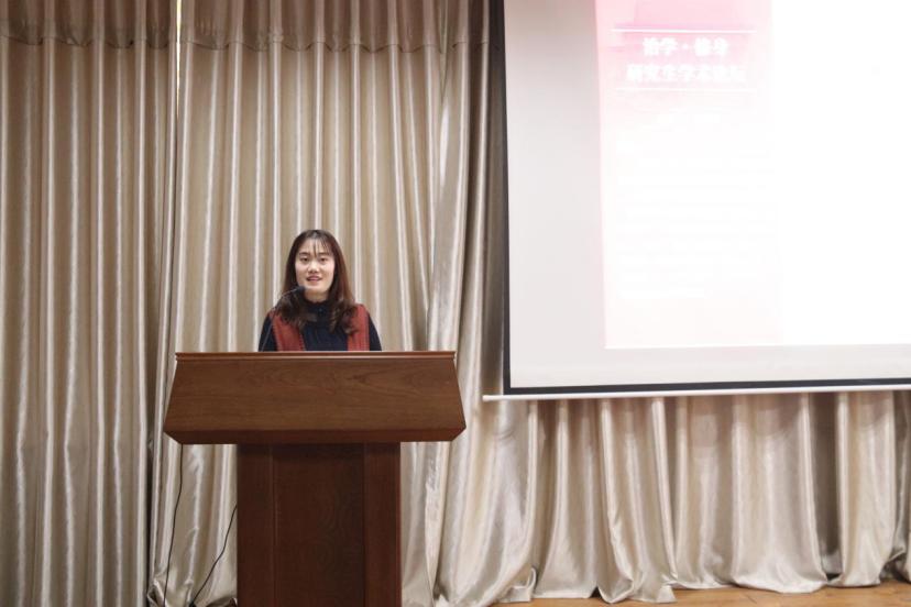 论坛伊始,马巾晴热烈欢迎同学们加入研究生会和班委的大家庭,希望同学们能热情工作,为学院和班级做好服务。论坛中,马巾晴分别从“博学修德”、“明辨笃行”和“做一个有情怀的学生干部”三方面展开。首先,她以家乡博兴为切入点,通过“博纳百川,兴及千里”解释了“博学”的涵义,她指出,学生干部的身份先是学生,再是学生干部,希望大家要珍惜时间,进行深入、广泛、认真的学习。同时,她特别要求学生干部要以“德”为先,必须要先学做人后学做事,要有自己的原则和底线,坚守自己的理想信念,做德才兼备的人才。接着,马巾晴结合大学生淘宝“刷单”被骗以及大学生毕业季被骗入传销组织两个真实案件,要求学生干部要做到明辨是非,明辨真伪,提高防骗意识。另外,她以自己的备考经历为例,提出学生干部需要有踏实做事的“笃实”精神,需要有屡败屡战、重头再来的勇气,要勇于不断试错,增加经验,以便更好地科研和工作。