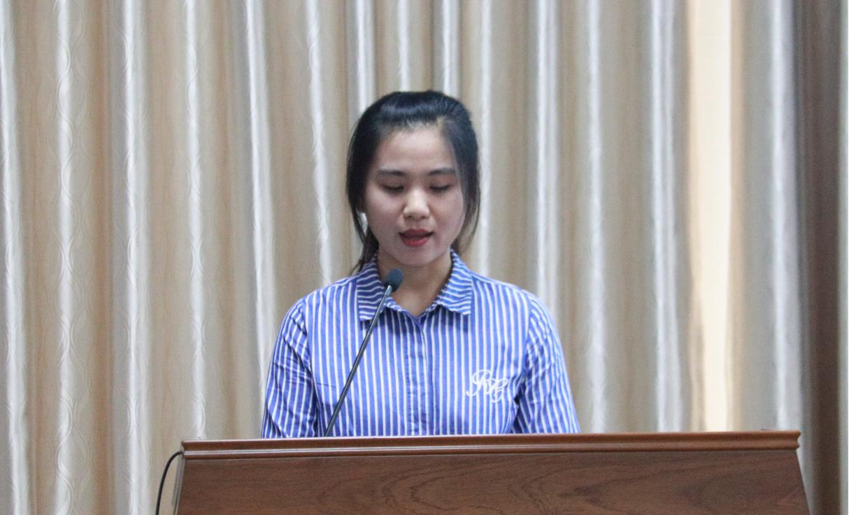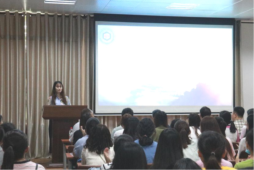 2020级分析化学的位如月作为新生代表进行发言,分享了自己对研究生生活的期待与憧憬,并提出了研究生应当明确目标,厚积薄发、内强素质、外塑形象的三点需要。