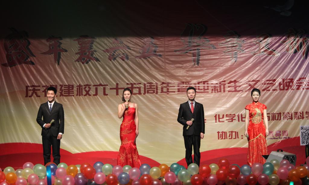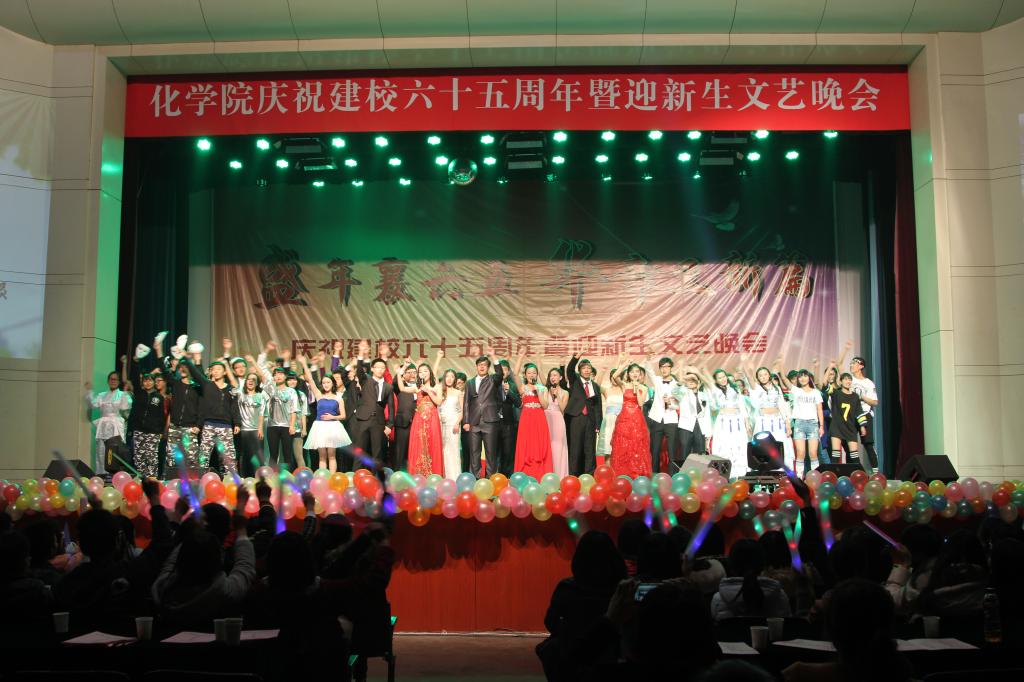 为庆祝学校建校六十五周年,喜迎2015级新同学,11月13日晚,英国365上市公司在千佛山校区大礼堂举办“盛年襄六五,华章又新篇”——庆祝建校六十五周年暨迎新生文艺晚会。校长唐波,纪委书记初乐娟,校长办公室、科技处、学生工作部、统战部、文学院等单位有关同志,以及化学院负责同志、部分师生一同观看了演出。
