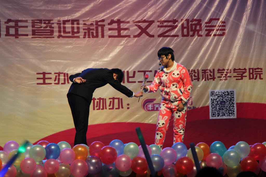 晚会不但呈现了精美的表演,还积极借助“山师化语”学院微信公众平台和微信墙进行互动。同学们积极参与,“爱祖国,爱师大,爱化院”、“青春万岁,明天会更好”、“化院最棒、山师最棒”等充满正能量的留言,不断刷新着大屏幕,活跃了现场气氛,为晚会增光添彩。本场晚会节目新颖,形式多样,精彩纷呈,高潮迭起。此次晚会在展现化院学子青春风采的同时,也用这样一场视听盛宴为学校六十五周年华诞献礼,表达了对母校真挚的热爱和美好的祝福。