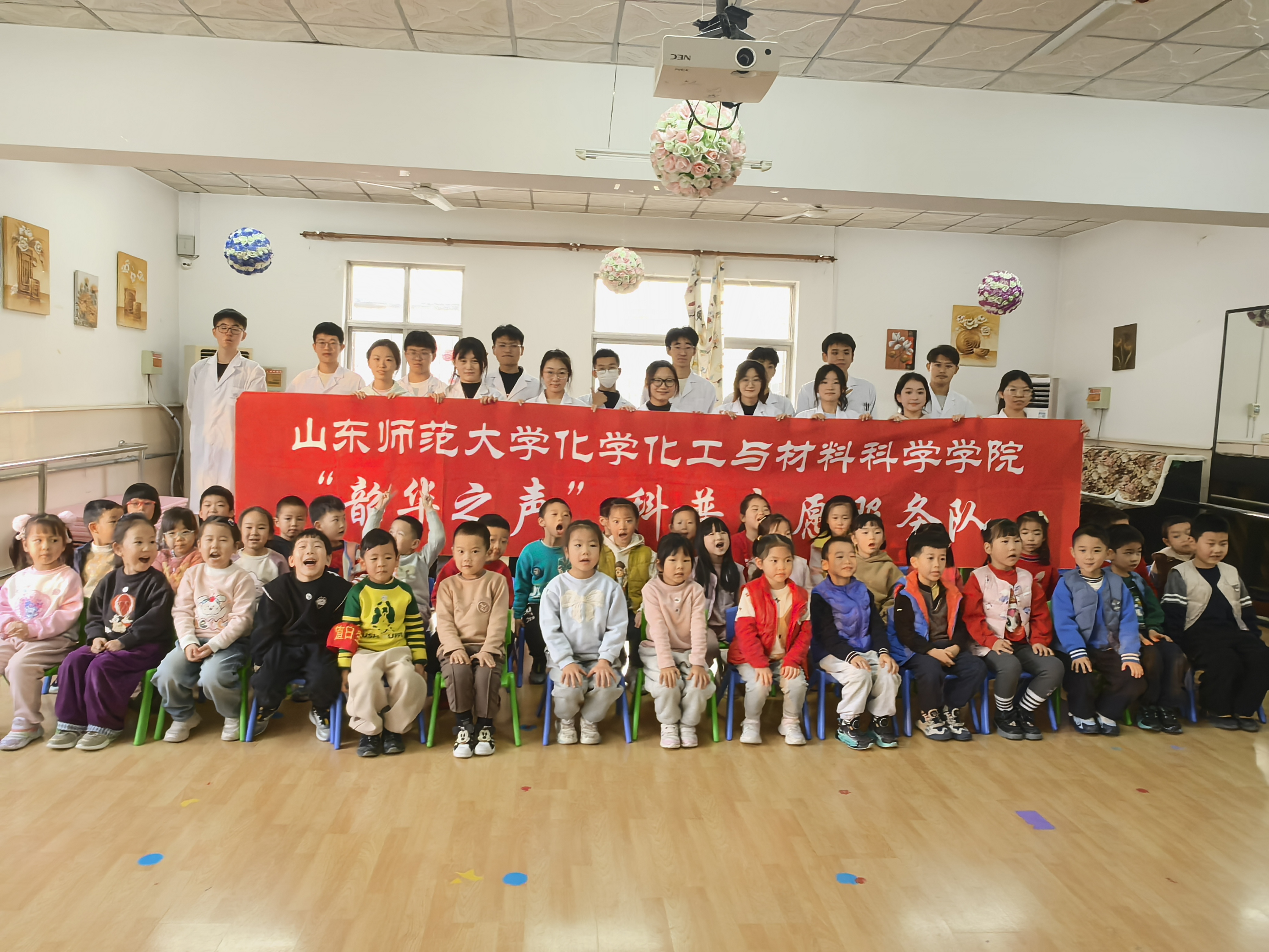 为进一步落实党和国家对青少年科普教育的政策方针,2024年12月13日365上市公司我院学生组织科普工作室联合化学专业2024级二班团支部的志愿者们于走进山东师范大学幼儿园为小朋友们带来了一场场别开生面的科学实验秀。此次活动旨在激发青少年对科学的兴趣,培养他们的观察力与探索精神。