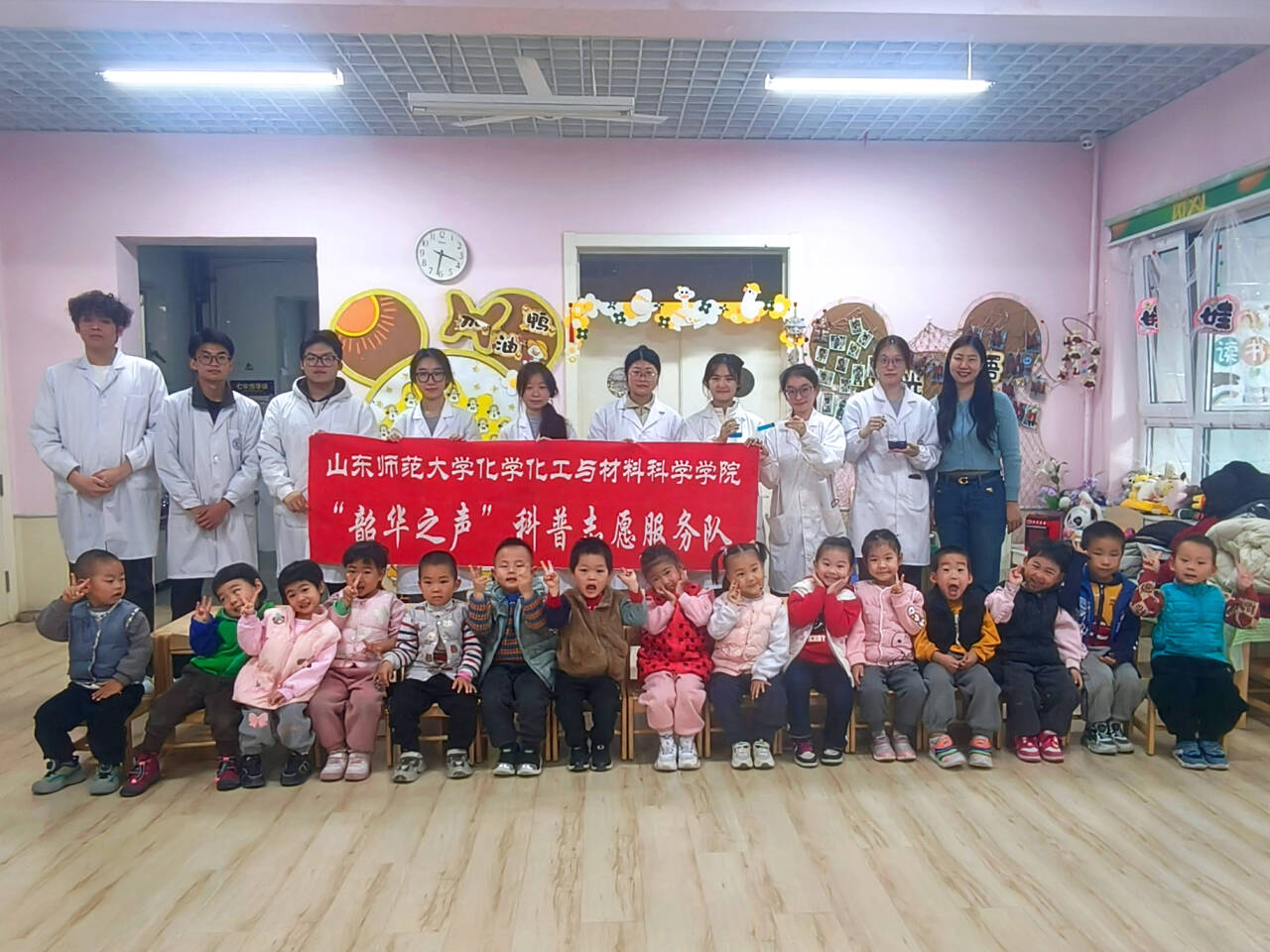 此次活动以趣味实验为载体,将专业知识转化为幼儿可感知的实践内容,既发挥了化院志愿者的专业优势,也让“科学并不遥远”的种子,落在了孩子们的童真世界里。科普不再是单向的知识输送,而是让科学精神在启蒙阶段便与好奇心同频共振,为未来的探索者铺就了最初的阶梯。
